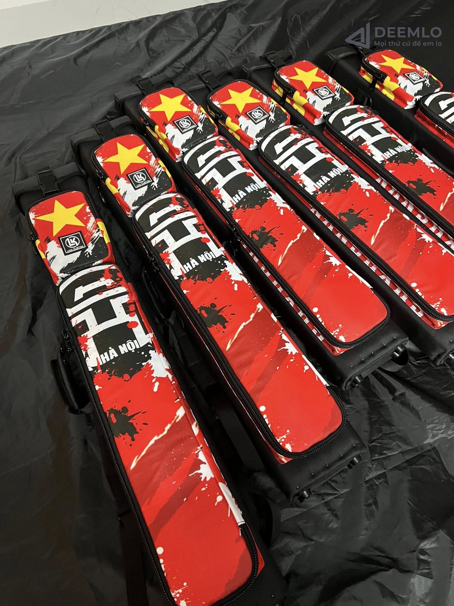 Red Energy sport-style 1x2 billiard cue case design by Deemlo. Bold red-black contrast with dynamic brush textures. Sublimation print-ready.